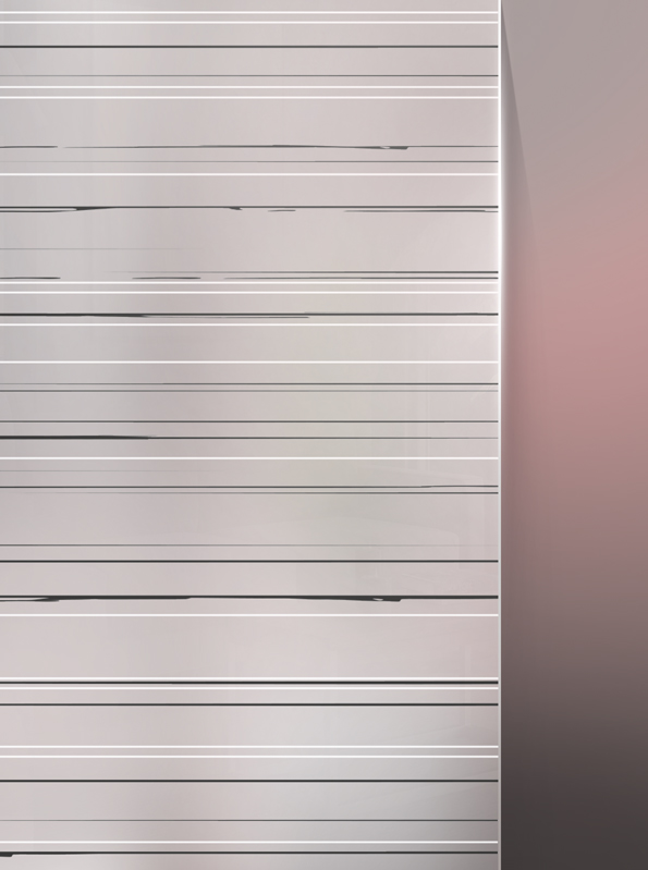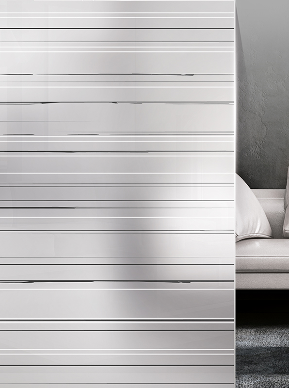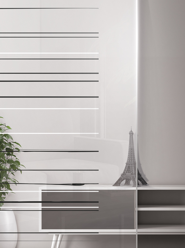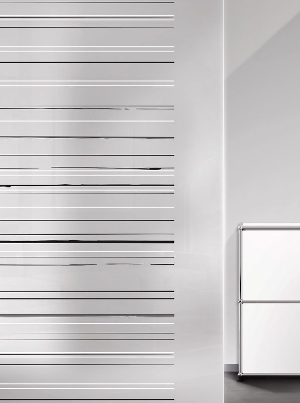 Das Glasdesign Alvinegra überzeugt mit feiner, in Schwarz und Weiß gehaltener Linienführung. Die filigranen Linien, die sich eher zart über die Glasoberflächen ziehen, unterstreichen zudem den maximalen Kontrast zwischen Schwarz und Weiß. Die Klarheit dieses Designs erzeugt gleichermaßen Dynamik und Tiefe, ohne dabei zu überladen zu wirken.