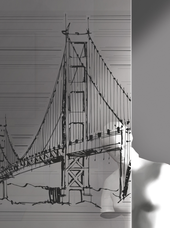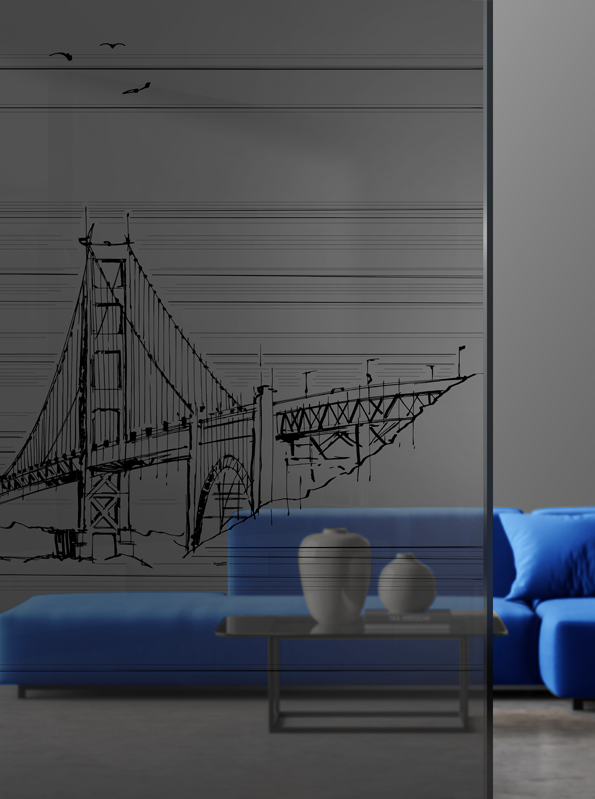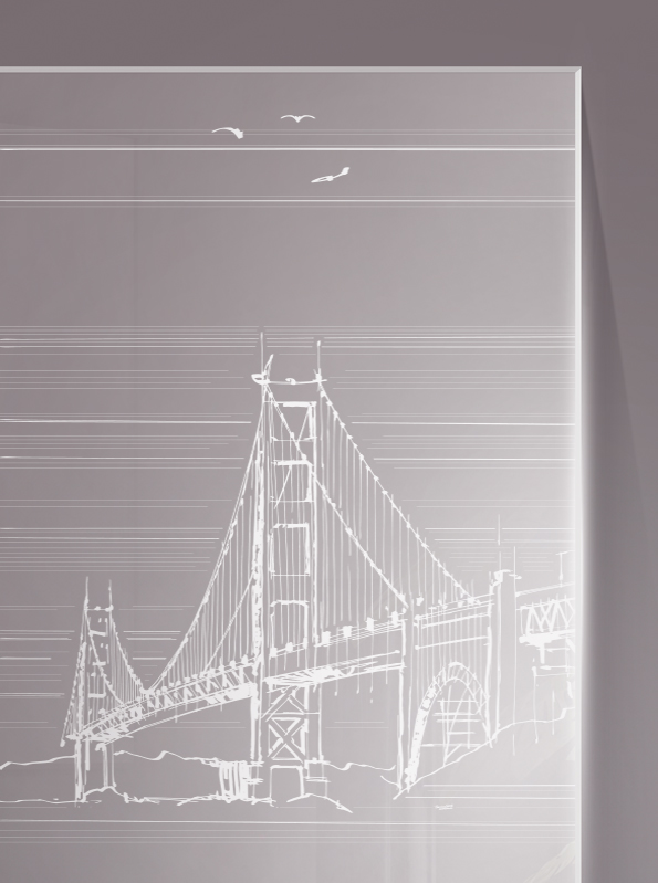 Die abgebildete Darstellung auf SatinatoLH Classic White bietet einen wunderbaren Kontrast zu dem in Schwarz umgesetzten Motiv der Golden Gate Bridge.