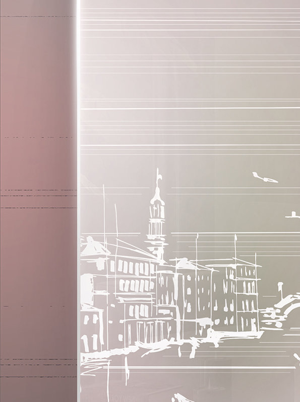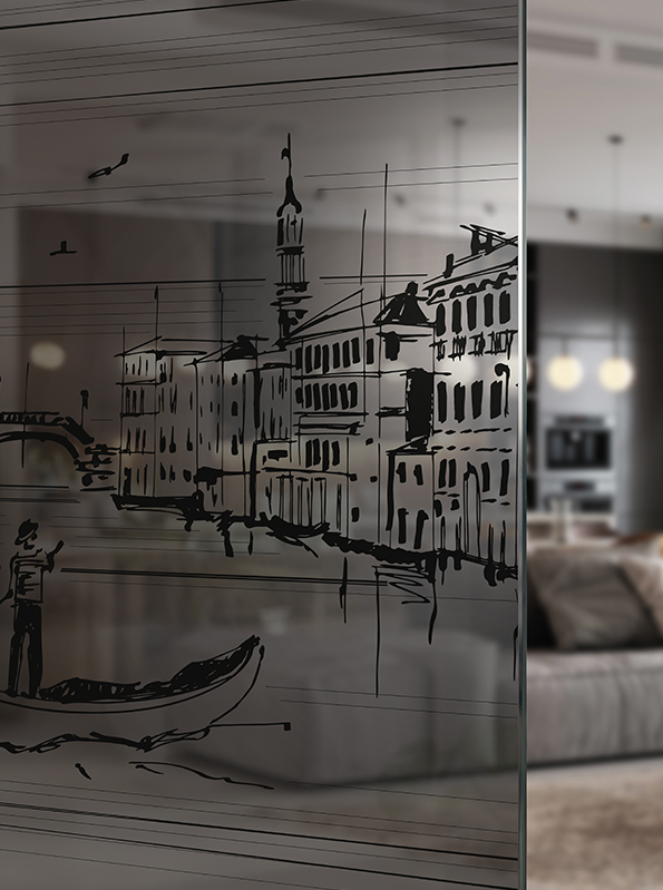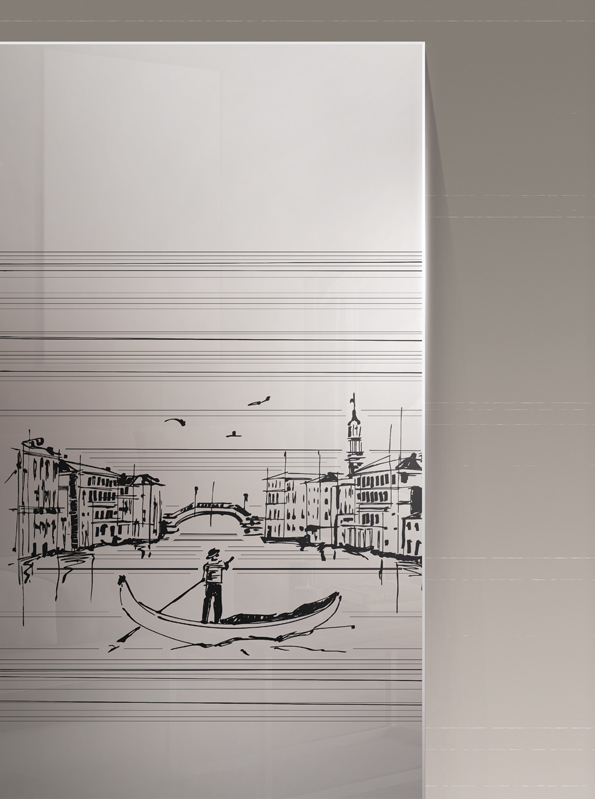 Faszinierend und überzeugend beschreibt wohl am besten das romantische Glasdesign San Marco, das hier im schwarzen Digital-Druck realisiert wurde.
