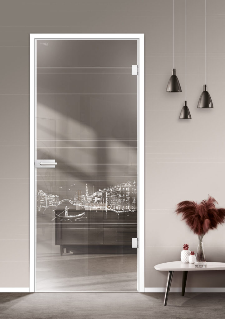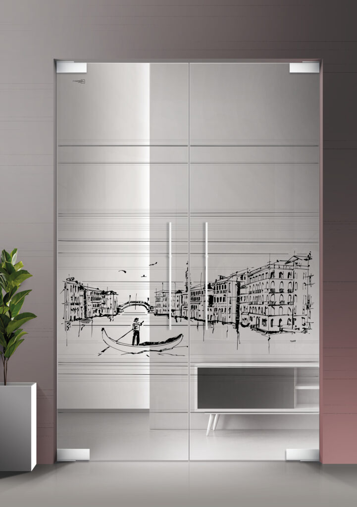 Kunstvolle Fassaden, die berühmten Gondeln und das besondere Flair der Lagunenstadt, all das überzeugt als charmantes Glastüren-Motiv in der Stilelemente-Individual-Kollektion.