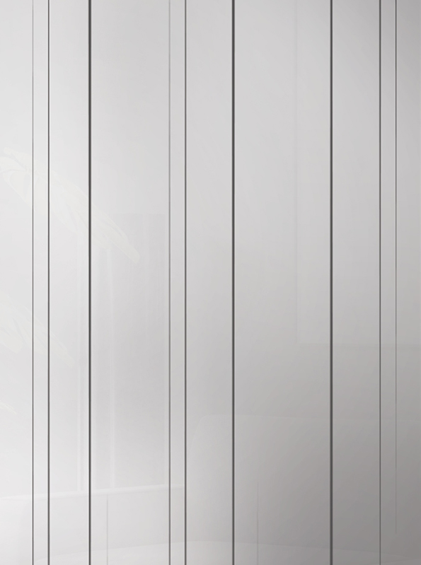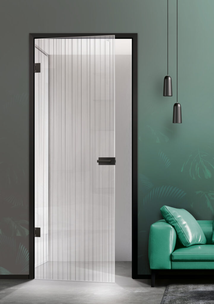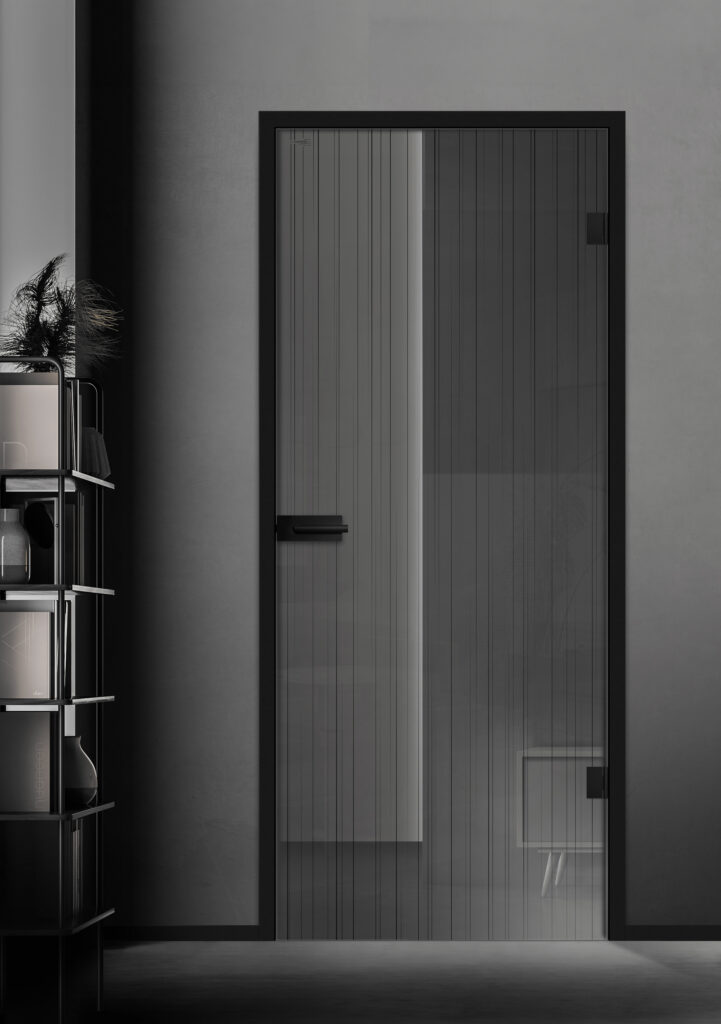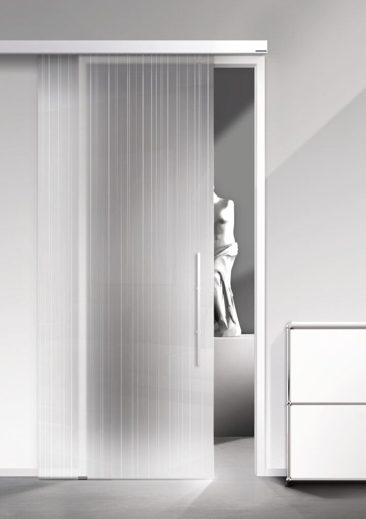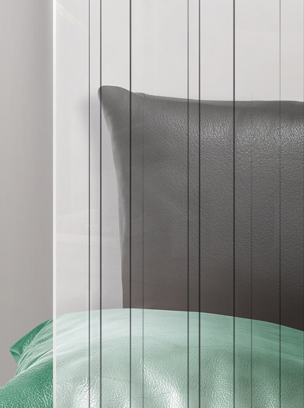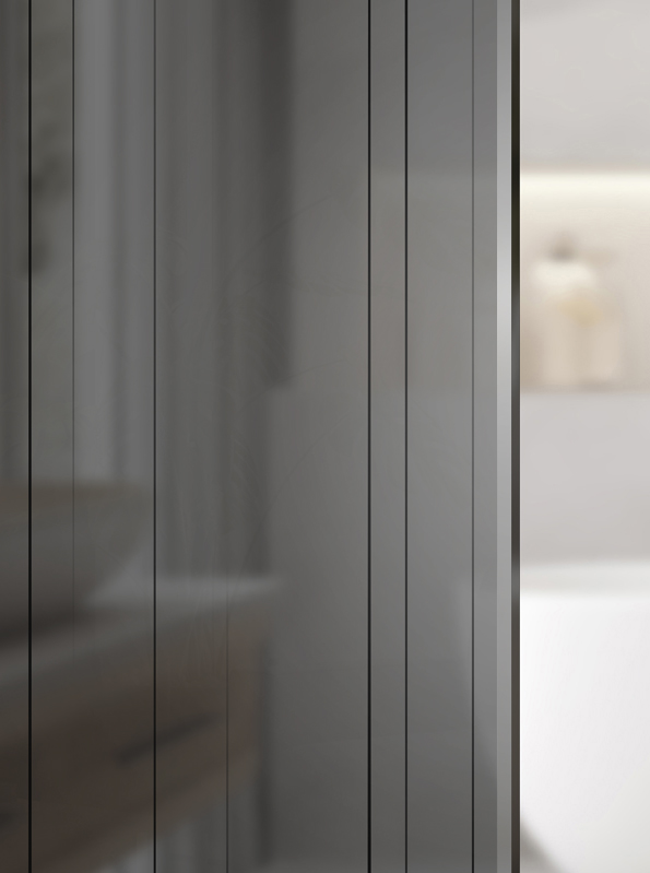 Die besondere Ruhe die das Glasdesign Sumatra ausstrahlt bildet in Verbindung mit dem getönten Float Grau-Glas, eine sich eher zurücknehmende Komposition.