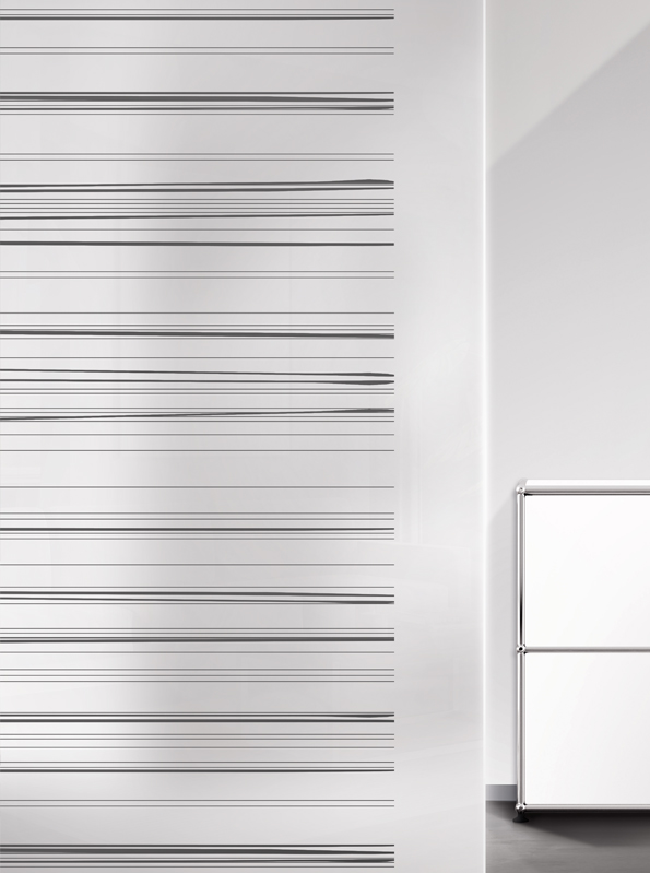 Einige diagonal verlaufende Linien im Grundraster sorgen für eine spezielle „eingewebte“ Anmutung. Abgerundet wird das Glasdesign Tecido durch das harmonisch nach oben und unten ausgedünnte Grundraster.